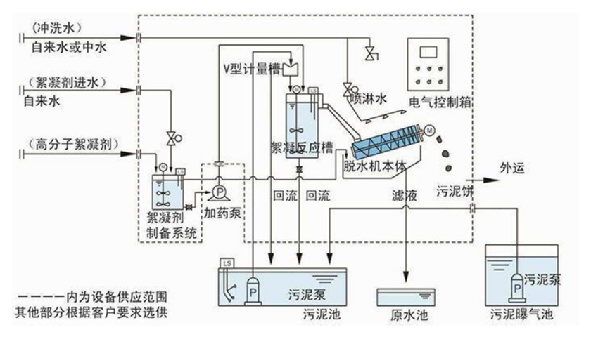 2、脫水:經(jīng)過濃縮的污泥隨著螺旋軸的轉(zhuǎn)動不斷往前移動;沿泥餅出口方